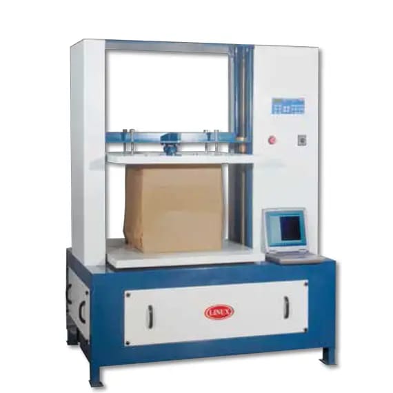 Container Compression Tester is an efficient and easy to use equipment intended for measuring the ability of Corrugated or Solid fiber shipping containers to resist external compressive forces. This method describes how to determine the resistance of a fiberboard shipping container to compressive forces. This is accomplished by placing the container between two flat platens, one of which is mechanically driven to compress the box. A recording device is incorporated to indicate the force and deformation (deflection) required to compress the container.